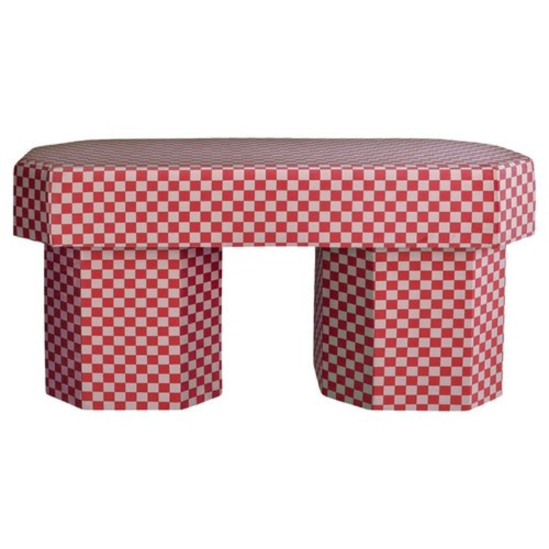 Viva Checkerboard Red and Pink Bench by Houtique Dimensions: D 100 x W 45 x H 48 cm Materials: Velvet, Upholstery, Wood Also available in different colours. Please contact us. VIVA BENCH. Designed by Carolina Mico. Made in Spain. Upholstered bench in flame