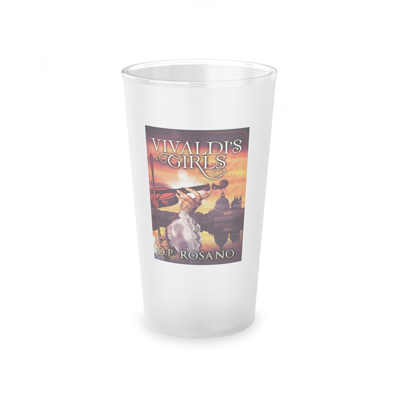 This frosted matte finish pint glass is versatile and dishwasher-safe. The cover art in this pint glass is from D.P. Rosano's book, Vivaldi's Girls.