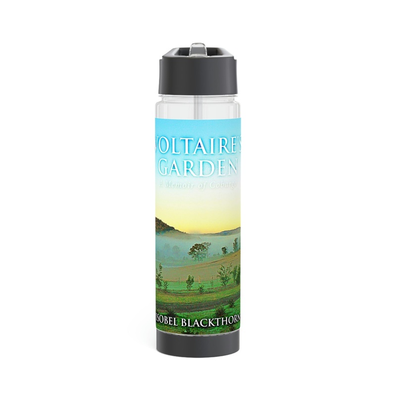 Add flavor and personality to your water with this infuser bottle. Twist the base off to access the infuser and add fruits, tea leaves, or anything you desire to enhance the flavor of your water. On the top, you’ll find a twist-on lid with a flip-top drinking sprout for a seamless drinking experience. This infuser is excellent for using at home, during outdoor excursions, or at the gym as a sports bottle. The cover art in this infuser water bottle is from Isobel Blackthorn’s book, Voltaire’s Garden.