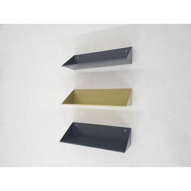 About this item Set of three grey and yellow wall shelves model ZT designed by Constant Nieuwenhuijs and produced by Asmeta. The shelves were later commissioned by Martin Visser for 't Spectrum. The shelves have been repainted in the orignal color. The she