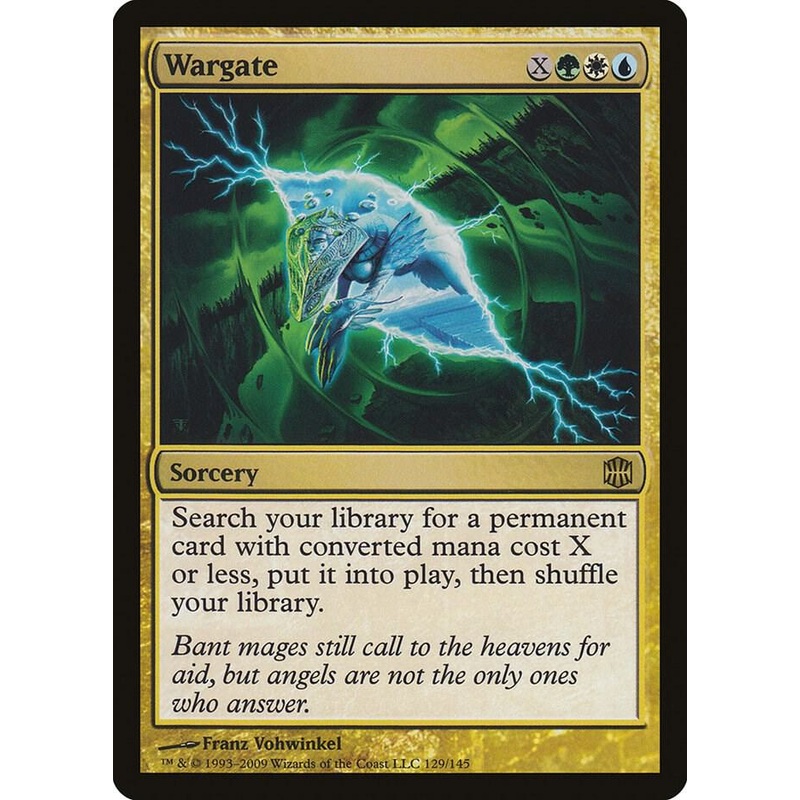 Search your library for a permanent card with converted mana cost X or less, put it into play, then shuffle your library.Rarity:R#:129Card Type:SorceryFlavor:Bant mages still call to the heavens for aid, but angels are not the only ones who answer.Casting