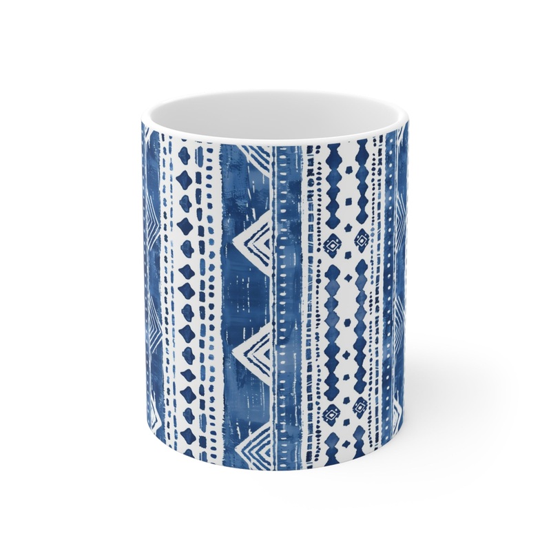 The Watercolor Sashiko Bohemian Blue design embodies a unique blend of artistic styles, combining watercolor aesthetics with traditional Sashiko stitching and a bohemian flair.