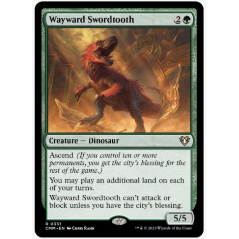 Ascend(If you control ten or more permanents, you get the city's blessing for the rest of the game.)You may play an additional land on each of your turns.Wayward Swordtooth can't attack or block unless you have the city's blessing.Rarity:R#:331Card Type:Cr