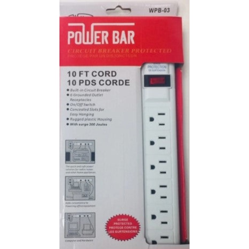 WELLSON 10ft Power Bar with 6 Outlets – WPB-03