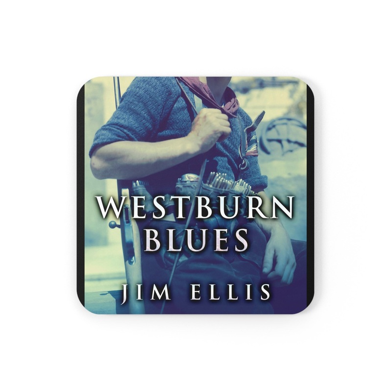 These coasters are made with a high-gloss top and feature a cork back to prevent sliding, and each order comes with a set of four coasters. The cover art in these coasters is from Jim Ellis's book, Westburn Blues.