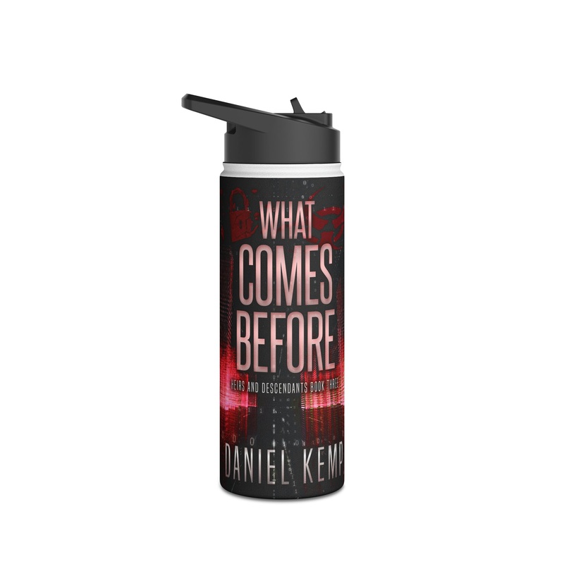 Quench your thirst in style with this 18oz stainless steel water bottle featuring a double-wall stainless steel build that keeps your drinks frosty for 24h and soothingly hot for 12h. This BPA-free, steel water bottle comes with a twist-on lid for easy sipping, making it excellent for daily use at work, at college, in the car, and beyond. The cover art in this water bottle is from Daniel Kemp’s book, What Comes Before.