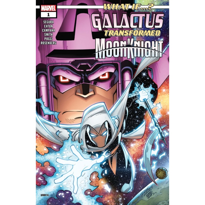 When Khonshu, the Moon God, and Galactus, the World-Devourer, clash, Moon Knight is caught in the middle! To keep the peace, Moon Knight becomes the newest herald of Galactus but his alters cause the Power Cosmic to manifest in startling new ways! Unless Moon Knight can conquer his new powers and a few former heralds the Earth itself faces extinction!