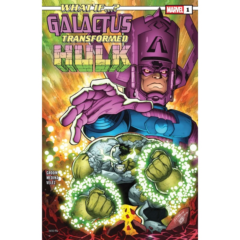 The first in a new series of one-shots that asks the question: What if Galactus recruited some of Marvel’s best and brightest heroes as his new cosmic heralds? See how the Power Cosmic transforms these once-familiar champions, twisting and turning all of Marvel history in their wake! In this tale, Galactus has conscripted Earth’s strongest warrior the Incredible Hulk into his service. But what will turn out to be the bigger mistake: trying to direct the fury of the Green Goliath… or giving the great mind of Bruce Banner a cosmic problem to solve?