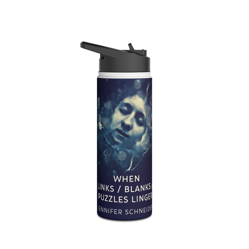 Quench your thirst in style with this 18oz stainless steel water bottle featuring a double-wall stainless steel build that keeps your drinks frosty for 24h and soothingly hot for 12h. This BPA-free, steel water bottle comes with a twist-on lid for easy sipping, making it excellent for daily use at work, at college, in the car, and beyond. The cover art in this water bottle is from Jennifer Schneider’s book, When Links / Blanks / Puzzles Linger.