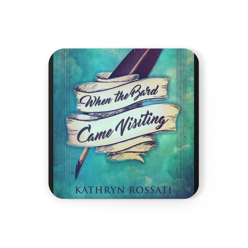 These coasters are made with a high-gloss top and feature a cork back to prevent sliding, and each order comes with a set of four coasters. The cover art in these coasters is from Kathryn Rossati's book, When The Bard Came Visiting.