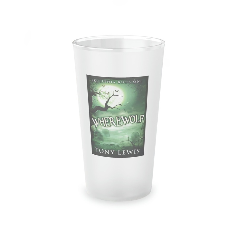 This frosted matte finish pint glass is versatile and dishwasher-safe. The cover art in this pint glass is from Tony Lewis's book, Wherewolf.