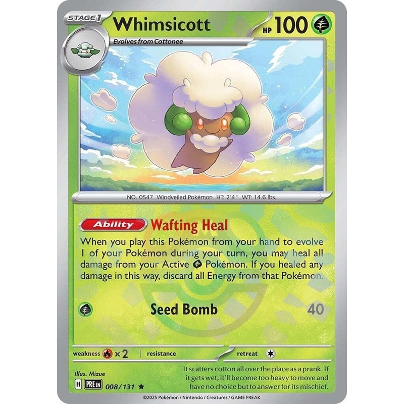 Card Number / Rarity:008/131 / RareCard Type / HP / Stage:Grass / 100 / Stage 1Card Text:Ability: Wafting HealWhen you play this Pokemon from your hand to evolve 1 of your Pokemon during your turn, you may heal all damage from your Active Grass Pokemon. If