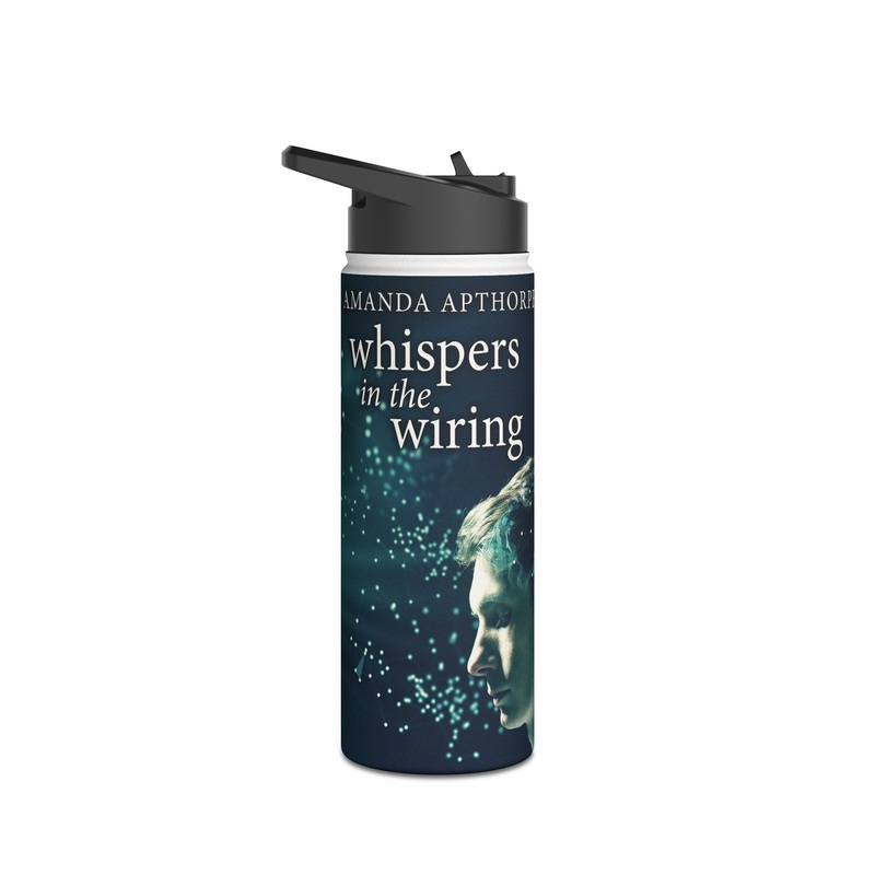 Quench your thirst in style with this 18oz stainless steel water bottle featuring a double-wall stainless steel build that keeps your drinks frosty for 24h and soothingly hot for 12h. This BPA-free, steel water bottle comes with a twist-on lid for easy sipping, making it excellent for daily use at work, at college, in the car, and beyond. The cover art in this water bottle is from Amanda Apthorpe’s book, Whispers In The Wiring.