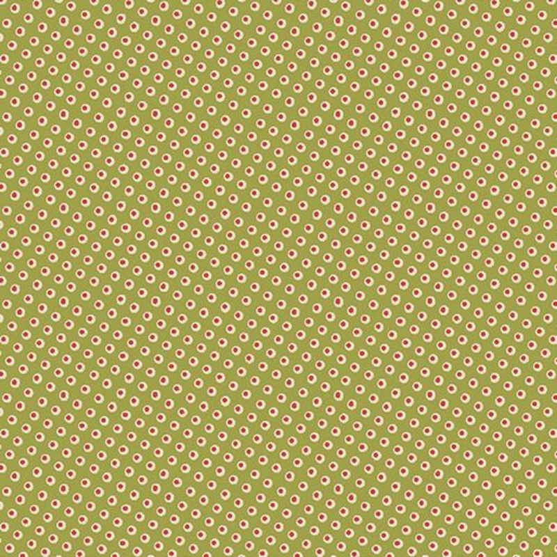 16269-44Cream dots with tan centers on grid on a green background