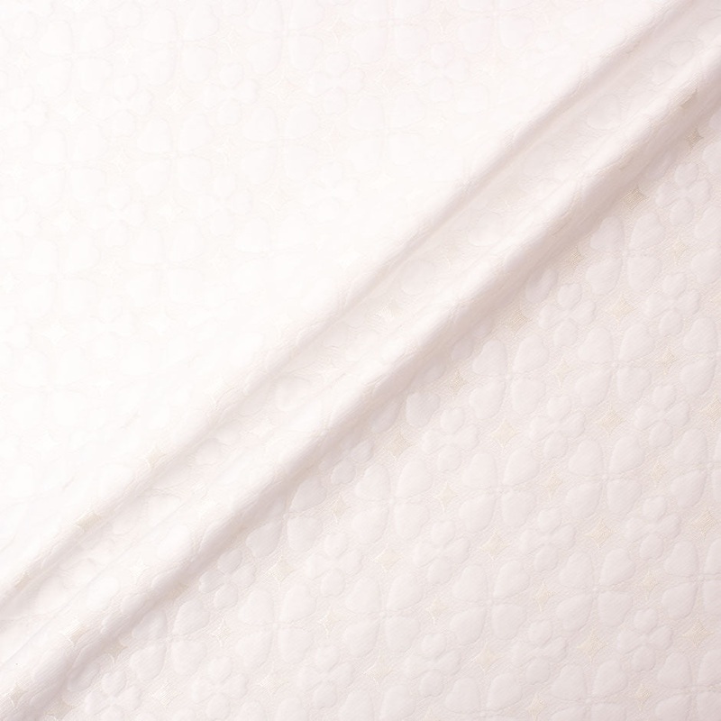 A pretty white4 leaf clovercotton blend cloqu with delicatemetallic detail. Understated yet sophisticated, this pliable fabric tailors especially well for a fulldress or skirt. Team this up with a plain silk crpe to create an eye catching outfit. Available