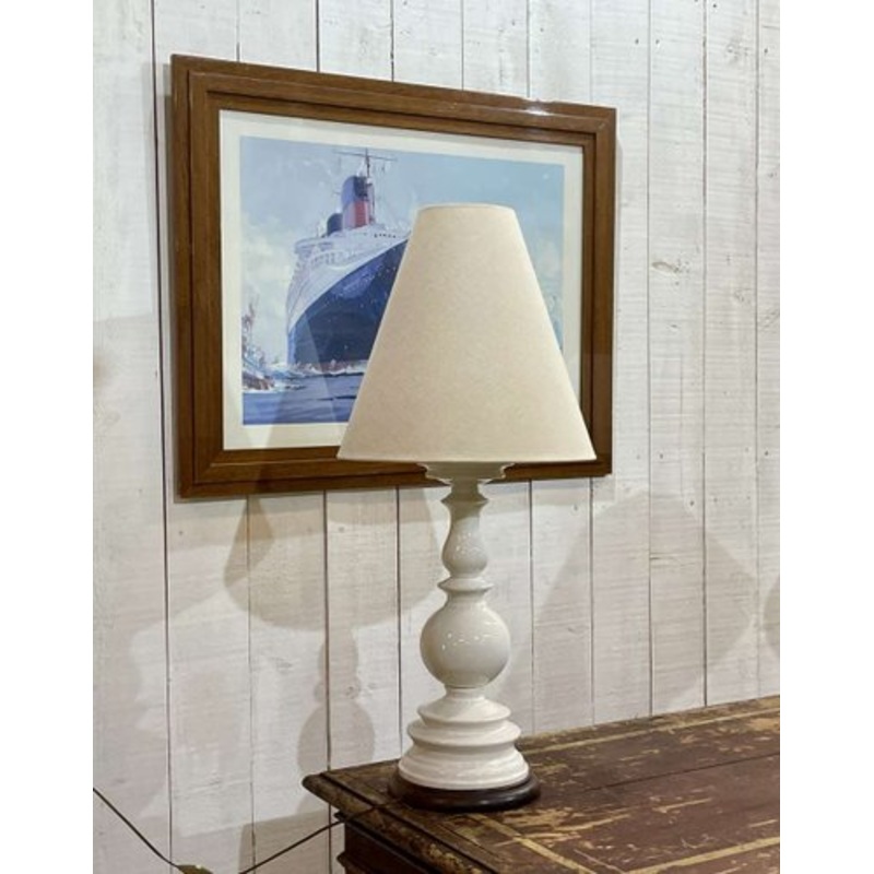 Late 19th century white porcelain lamp, modern lampshade, H=90cm, Diam=40cm.