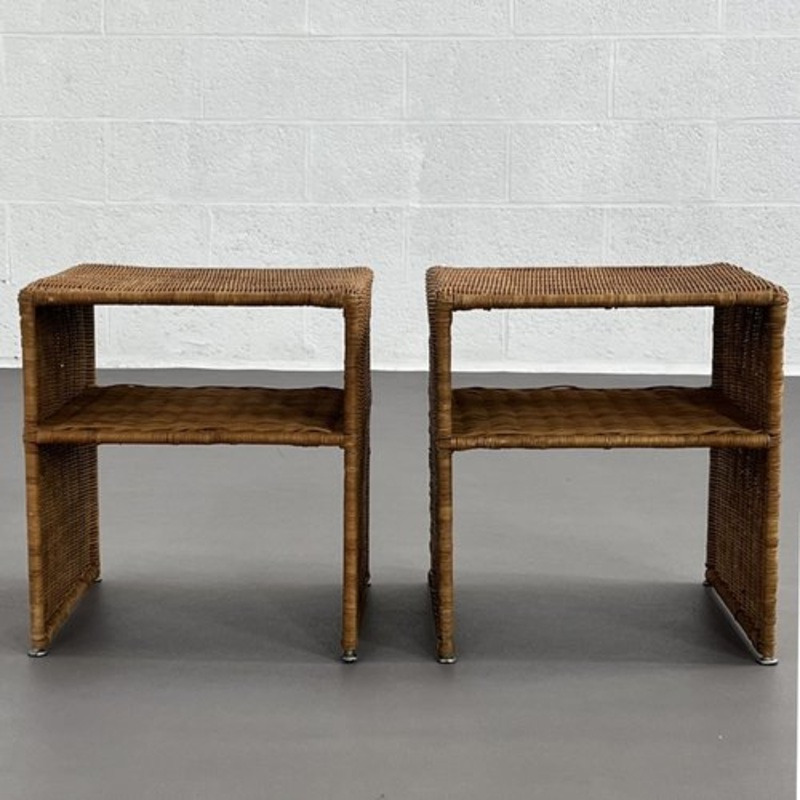 Pair of side tables or bedside tables from the 60s – 70s dressed in woven wicker,Pair of side tables or bedside tables from the 60s – 70s dressed in woven wicker
