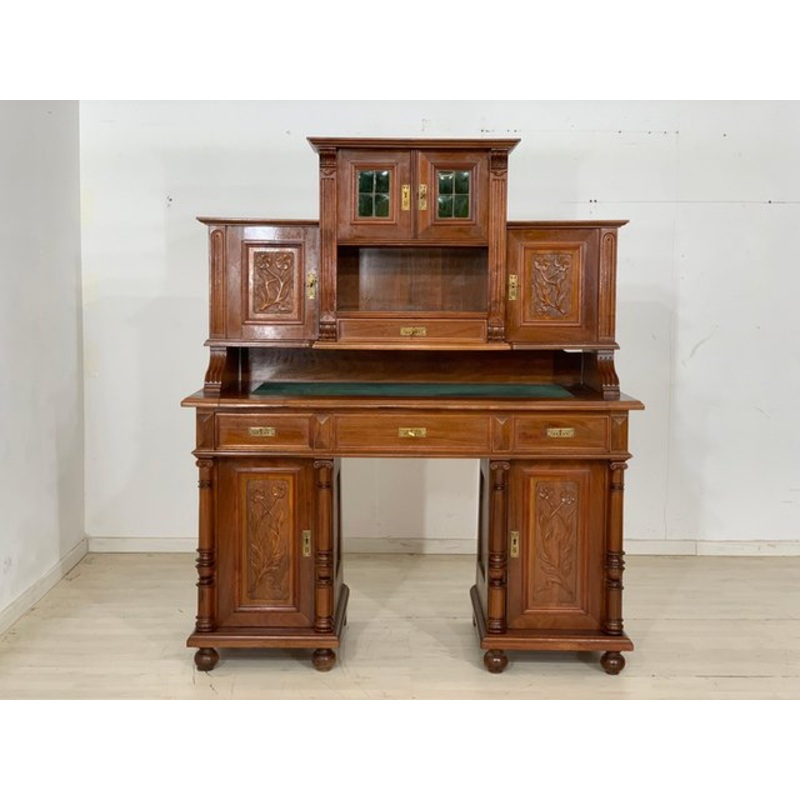 A very nice Wilhelminian style writing cabinet is for sale. The plate can be extended variably and expanded up to 30 cm. German Design around 1900 Walnut Brass fittings Key available good condition Dimensions: Height: 153.5 Width: 129 cm Depth: 60 cm | + e