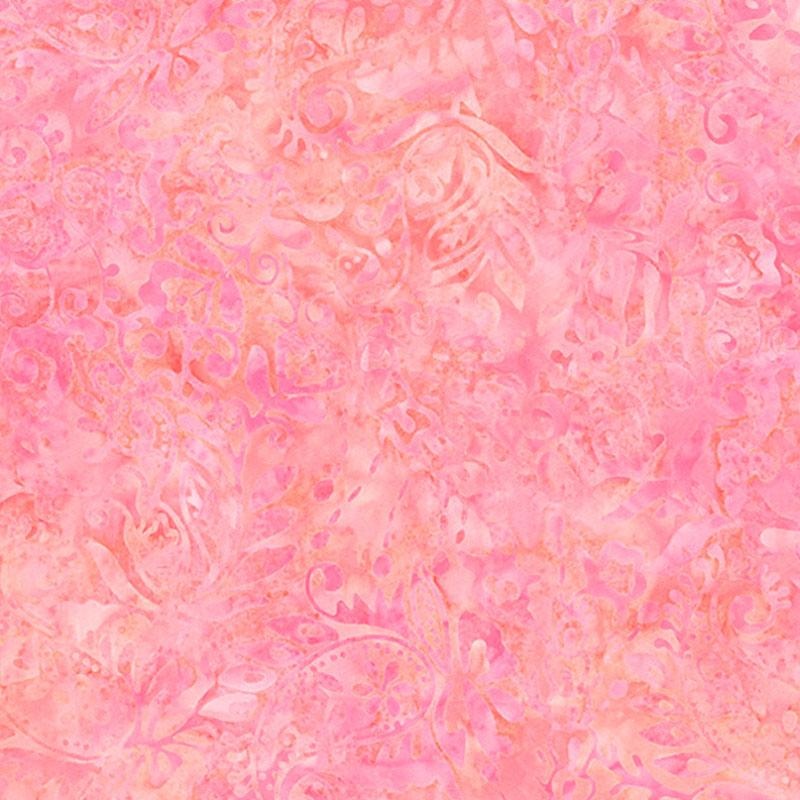 Desert Blossom collection by Wilmington, Paisley & Flowers. Canteloupe on pink. 100% cotton batik fabric, 42-45in wide.