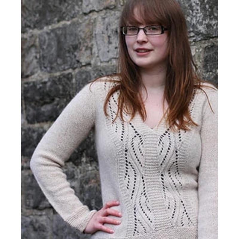 The north and west coasts of Scotland hold a spattering of islands, many little more than rocks strewn in a stormy sea. These are windswept places, landscapes scoured round and smooth by time, glaciers, and ocean winds.This pullover features lace inspired