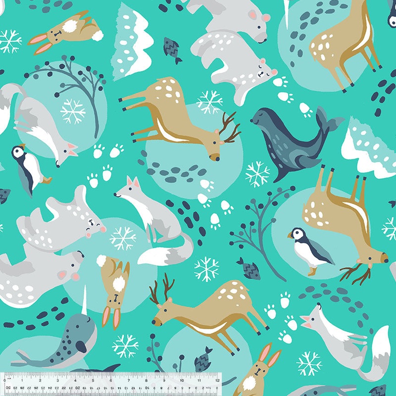 DBWF38375137404Winterfleece Prints Whistler Studios 53677-1 Turquoise Polar Pals Winterfleece