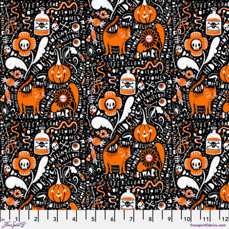 Witchy Ways Graffiti in Black from Free Spirit Fabrics and designer Cori Dantini. Cute halloween collection.44-45" wide100% cotton