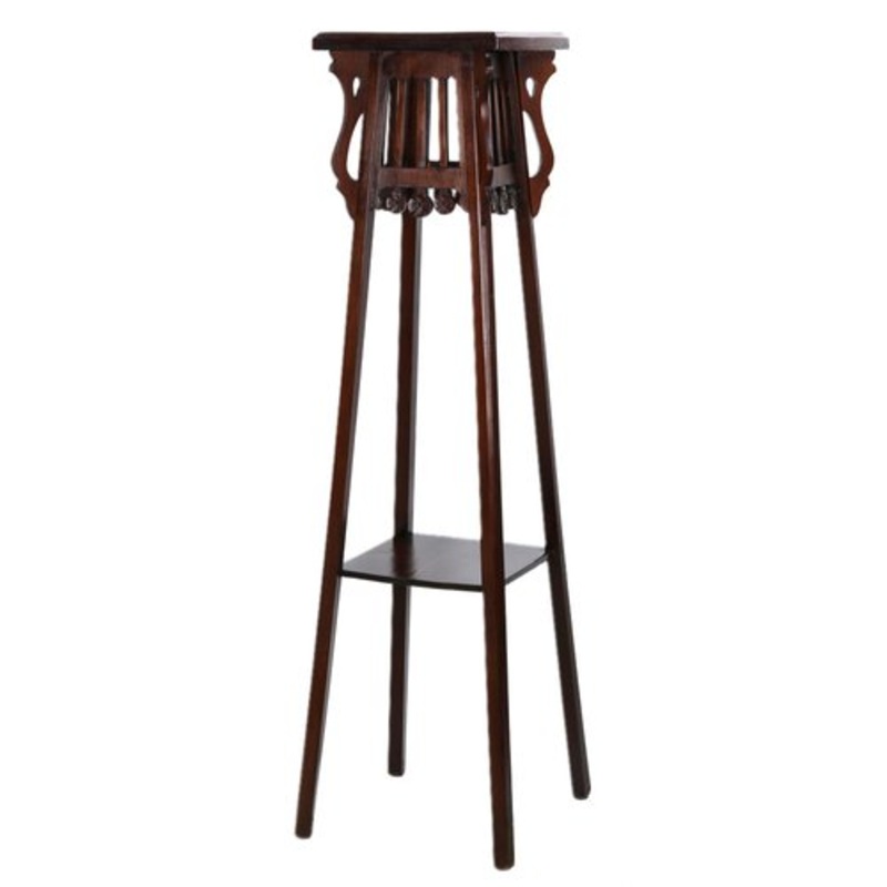 Made of carved and stained beech. High legs and decorative elements emphasize the characteristic features of the Art Nouveau style, expressed in the smoothness of lines and the sophistication of forms. Particular attention is drawn to the openwork cut elements of the side panels and skillfully carved plant ornaments, characteristic of the furniture art of the turn of the century. Dimensions: Height: 110 cm. Width: 27 cm. Condition: Professionally restored