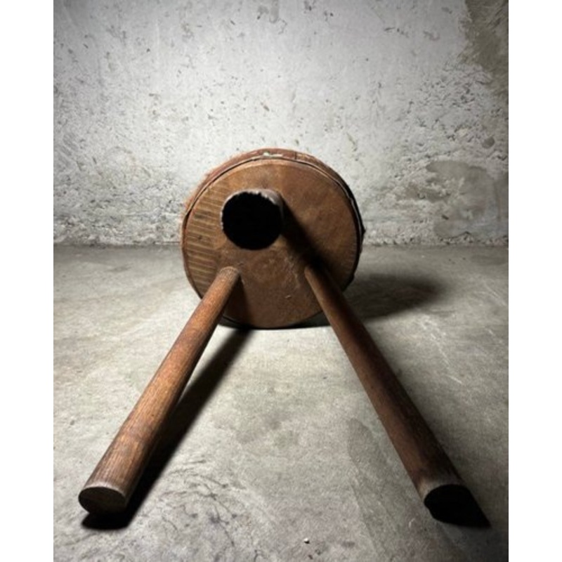 Tripod stool with wooden legs, leather seat with studded leather surround. Design Period 1960 to 1969 Production Period Unknown Country of Manufacture France Style Vintage Detailed Condition Good This vintage/antique item may have some wear such as scratch