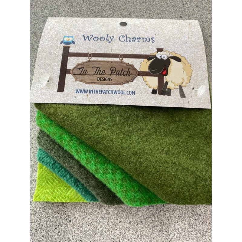 Wooly charms are 5 pieces of 5in x 5in.