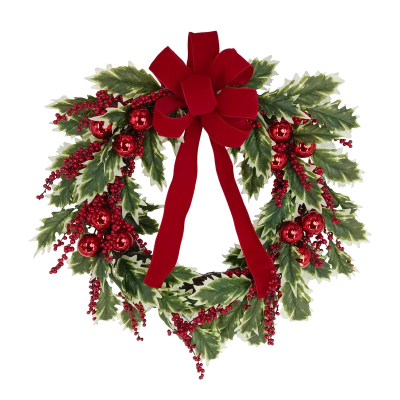 KXK3094349863Wreath with 12pcs Ornament ball (60mm), 58 leaves, 22 berry picks & Ribbon 30 D