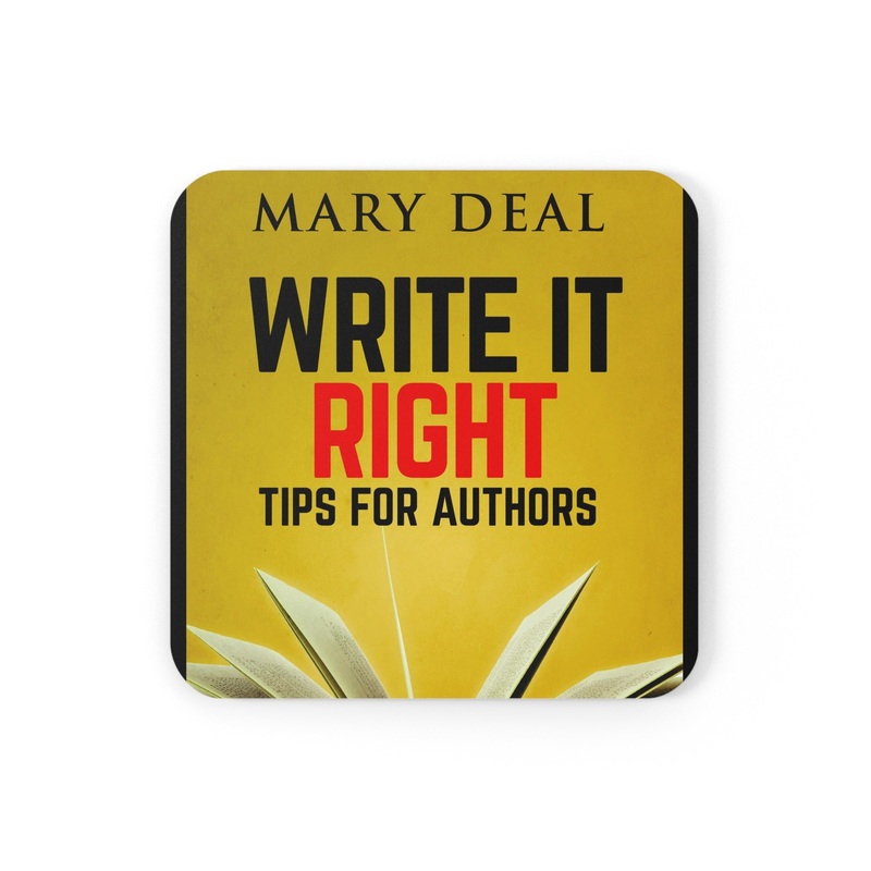 These coasters are made with a high-gloss top and feature a cork back to prevent sliding, and each order comes with a set of four coasters. The cover art in these coasters is from Mary Deal's book, Write It Right.