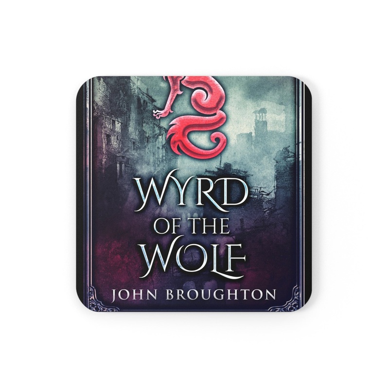 These coasters are made with a high-gloss top and feature a cork back to prevent sliding, and each order comes with a set of four coasters. The cover art in these coasters is from John Broughton’s book, Wyrd Of The Wolf.