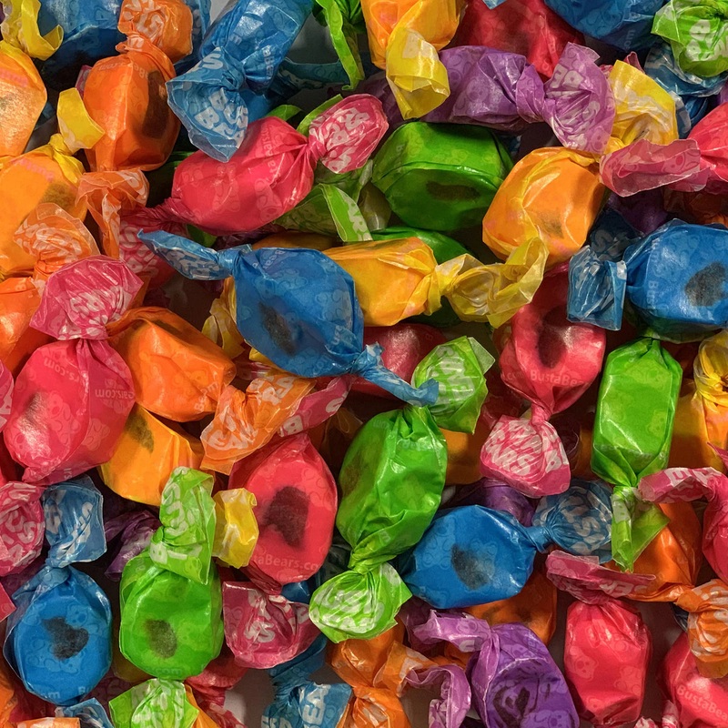 Busta' Bears Assorted Taffy mix has Albanese Gummies inside!Individually wrappedAs the weather gets warmer, the risk of melting candies is higher. Sweets & Geeks ships all candy without temperature preserving items. If you are in a region that has heat cap