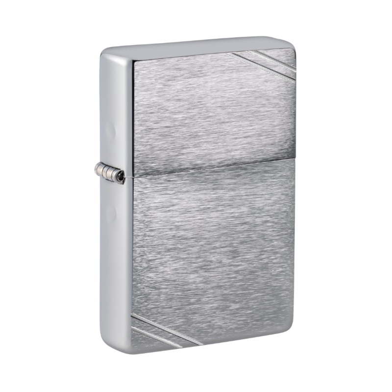 There’s nothing old about this vintage model. Features rounded corners and edges replacing the 1935 square case. This Brushed Chrome windproof lighter has slashes on the corners of this lighter. Comes packaged in a gift box. For optimal performance, fill with Zippo lighterfuel.