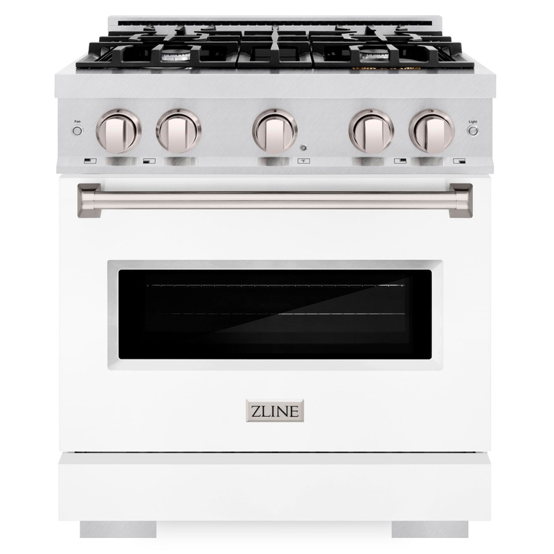Luxury isnt meant to be left desiredits meant to be attainable. The ZLINE 30 in. 4.2 cu. ft. Classic Gas Range with 4 Burner Cooktop and Convection Gas Oven in Satin Stainless Steel with White Matte Door (CGRS-WM-30) combines the elegance of a hand-finished porcelain gas cooktop with 4 Italian-made auto-reignition burners, a gas convection oven with an energy-efficient cooling fan to ensure quiet operation, and a beautiful white matte door with a Landscape window design allowing you to master every meal. With a modern, timeless style and refined functionality, ZLINE Classic Gas Ranges are masterfully crafted to deliver an elevated culinary experience.