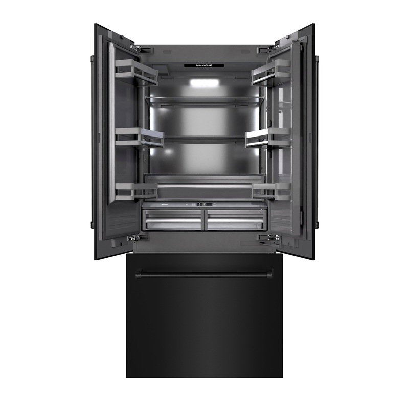 Luxury isn’t meant to be desired – it’s meant to be attainable. The ZLINE 36″ 19.6 cu. ft. French Door Built-In Bottom Freezer Refrigerator with Water Dispenser and Ice Maker in Black Stainless Steel with Graphite Gray Interior (GRBIV-BS-36) provides the ultimate upgrade to the center of your home by pairing premium dual cooling technology with enhanced storage capacity for multiple grocery items. Achieve ZLINE Attainable Luxury excellence with innovative features designed to enhance your kitchen’s cooling and freezing capability.