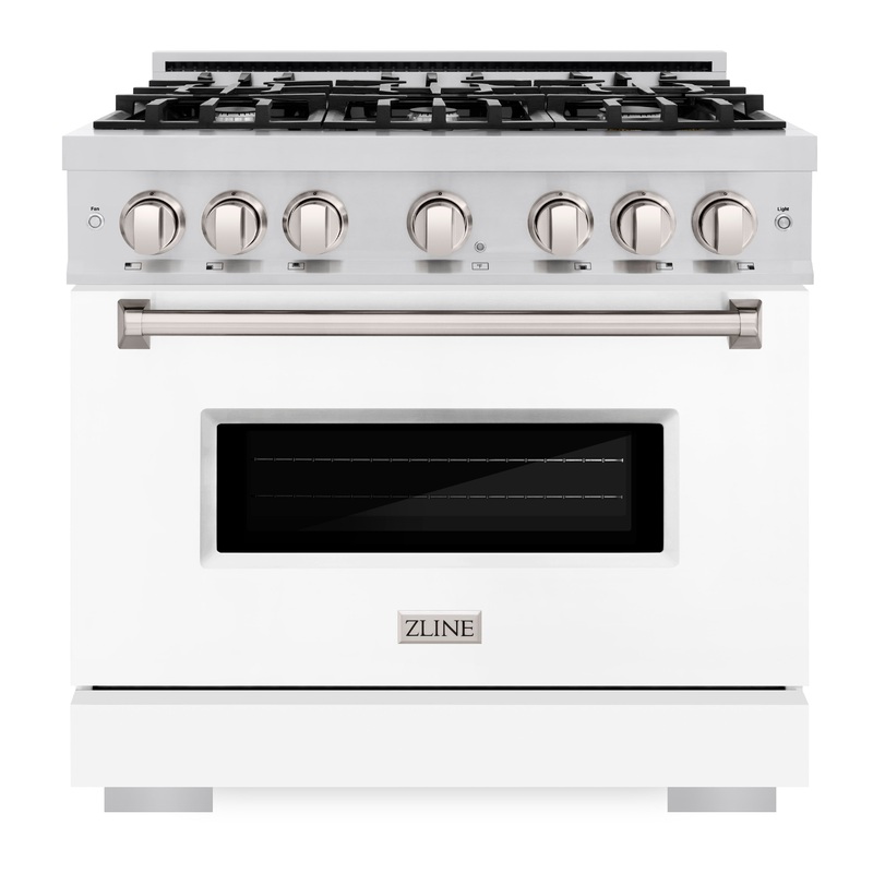 Luxury isn’t meant to be desired – it’s meant to be attainable. The ZLINE 36 in. 5.2 cu. ft. Classic Dual Fuel Range with 6 Burner Gas Cooktop and Electric Convection Oven in Stainless Steel with White Matte Door (CDR-WM-36) combines the elegance of a hand-finished porcelain gas cooktop with 6 Italian-made auto-reignition burners, an electric convection oven with an energy-efficient cooling fan to ensure quiet operation, and a beautiful white matte door with a Landscape window design allowing you to master every meal. With a modern, timeless style and refined functionality, ZLINE Classic Dual Fuel Ranges are masterfully crafted to deliver an elevated culinary experience.