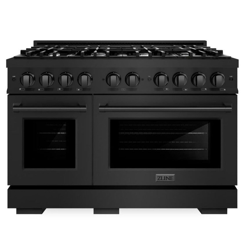Luxury isn’t meant to be desired – it’s meant to be attainable. The ZLINE 48 in. 6.7 cu. ft. Select Double Oven Gas Range with 8 Burner Cooktop in Black Stainless Steel (HGRB-48) combines the elegance of a hand-finished porcelain gas cooktop with 8 Italian-made auto-reignition burners, a large gas convection oven with an energy-efficient cooling fan to ensure quiet operation, a small baking oven, and Horizon oven door window designs allowing you to master every meal. With a modern, timeless style and refined functionality, ZLINE Select Gas Ranges are masterfully crafted to deliver an elevated culinary experience.