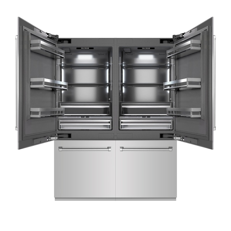 Luxury isn’t meant to be desired – it’s meant to be attainable. The ZLINE 60″ 32.2 cu. ft. French Door Built-In Bottom Freezer Refrigerator with Water Dispensers and Ice Makers in Stainless Steel with Graphite Gray Interior (GRBIV-304-60) provides the ultimate upgrade to the center of your home by pairing premium dual cooling technology with enhanced storage capacity for multiple grocery items. Achieve ZLINE Attainable Luxury excellence with innovative features designed to enhance your kitchen’s cooling and freezing capability.