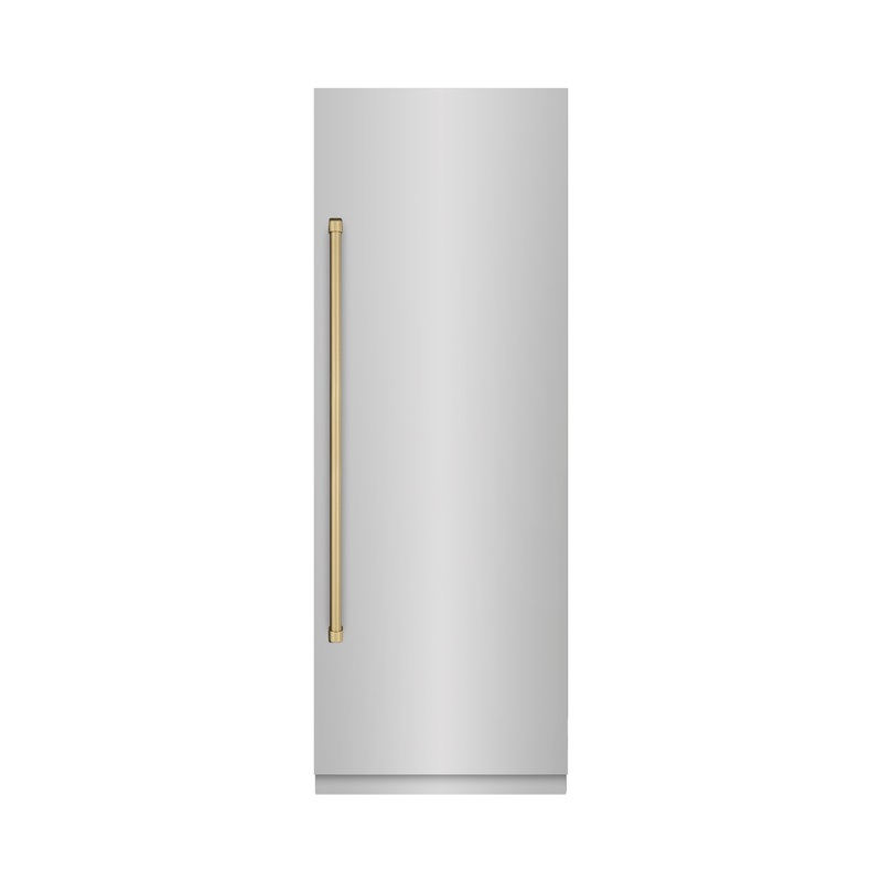 Luxury isn’t meant to be desired – it’s meant to be attainable. The ZLINE Autograph Edition 30 in. 16.7 cu. ft. Column Refrigerator in Stainless Steel with Graphite Gray Interior and Champagne Bronze Accents (RCRVZ-30430-CB) combines the convenience of a sleek integrated tall column built-in design with dual cooling technology and spacious storage capacity for multiple grocery items. Achieve ZLINE Attainable Luxury excellence with innovative features designed to enhance your kitchen’s cooling capability.