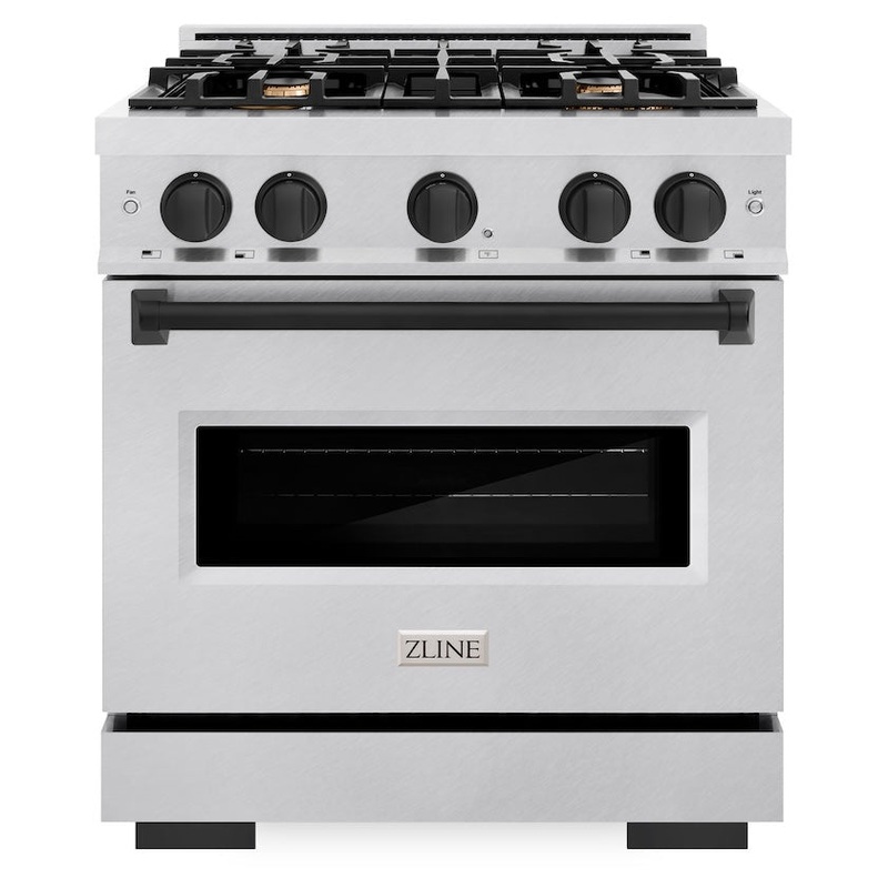 Luxury isnt meant to be left desiredits meant to be attainable. The ZLINE Autograph Edition 30 in. 4.2 cu. ft. Classic Dual Fuel Range with 4 Burner Gas Cooktop and Electric Convection Oven in Satin Stainless Steel with Matte Black Accents (CDRSZ-30-MB) combines the elegance of a hand-finished porcelain gas cooktop with 4 Italian-made auto-reignition burners, an electric convection oven with an energy-efficient cooling fan to ensure quiet operation, a Landscape oven door window design, and stunning matte black knobs and handle allowing you to master every meal. With a modern, timeless style and refined functionality, ZLINE Classic Dual Fuel Ranges are masterfully crafted to deliver an elevated culinary experience.