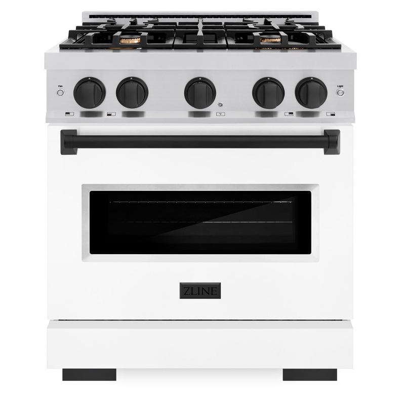 Luxury isn’t meant to be desired – it’s meant to be attainable. The ZLINE Autograph Edition 30 in. 4.2 cu. ft. Classic Dual Fuel Range with 4 Burner Gas Cooktop and Electric Convection Oven in Stainless Steel with White Matte Door and Matte Black Accents (CDRZ-WM-30-MB) combines the elegance of a hand-finished porcelain gas cooktop with 4 Italian-made auto-reignition burners, an electric convection oven with an energy-efficient cooling fan to ensure quiet operation, a beautiful white matte door with a Landscape window design, and stunning matte black knobs and handle allowing you to master every meal. With a modern, timeless style and refined functionality, ZLINE Classic Dual Fuel Ranges are masterfully crafted to deliver an elevated culinary experience.