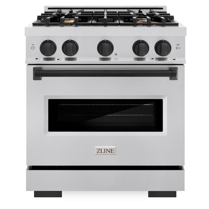 ZLINE Autograph 30″ 4.2 cu. ft. Classic Gas Range with 4 Burners in Stainless Steel and Matte Black Accents, CGRZ-30-MB