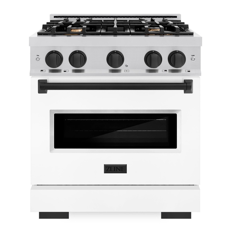 Luxury isn't meant to be desired - it's meant to be attainable. The ZLINE Autograph Edition 30 in. 4.2 cu. ft. Classic Gas Range with 4 Burner Cooktop and Convection Gas Oven in Stainless Steel with White Matte Door and Matte Black Accents (CGRZ-WM-30-MB)