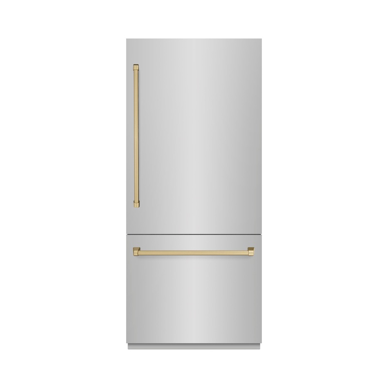 Luxury isn’t meant to be desired – it’s meant to be attainable. The ZLINE Autograph Edition 36″ 19.8 cu. ft. Built-In Bottom Freezer Refrigerator with Water Dispenser and Ice Maker in Stainless Steel with Champagne Bronze Accents (RBITZ-304-36CB) provides the ultimate upgrade to the center of your home by pairing premium dual cooling technology with enhanced storage capacity for multiple grocery items. Achieve ZLINE Attainable Luxury excellence with innovative features designed to enhance your kitchen’s cooling and freezing capability.