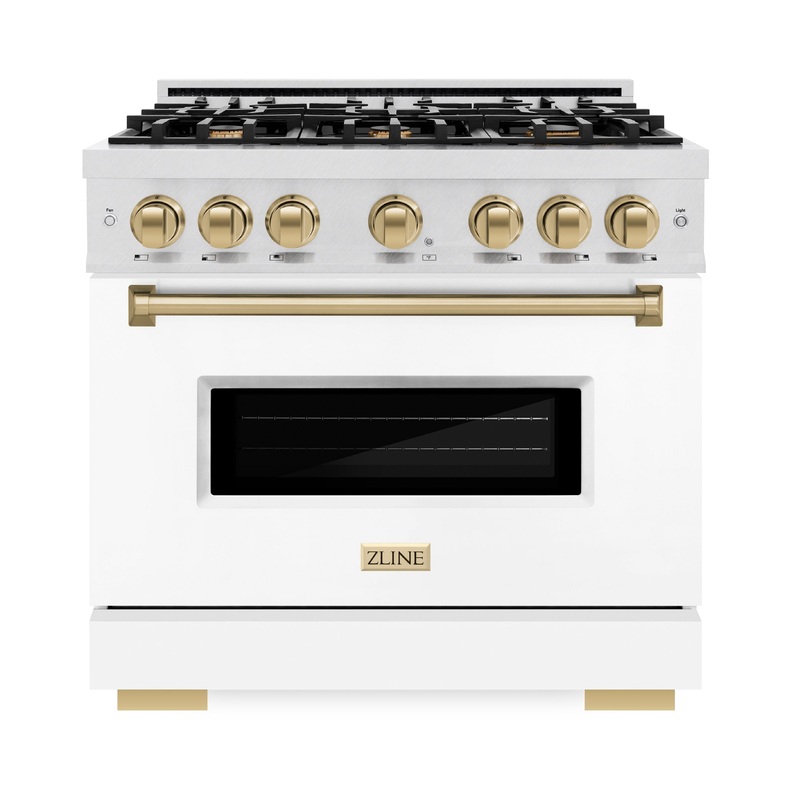 Luxury isnt meant to be left desiredits meant to be attainable. The ZLINE Autograph Edition 36 in. 5.2 cu. ft. Classic Dual Fuel Range with 6 Burner Gas Cooktop and Electric Convection Oven in Satin Stainless Steel with White Matte Door and Champagne Bronze Accents (CDRSZ-WM-36-CB) combines the elegance of a hand-finished porcelain gas cooktop with 6 Italian-made auto-reignition burners, an electric convection oven with an energy-efficient cooling fan to ensure quiet operation, a beautiful white matte door with a Landscape window design, and stunning champagne bronze knobs and handle allowing you to master every meal. With a modern, timeless style and refined functionality, ZLINE Classic Dual Fuel Ranges are masterfully crafted to deliver an elevated culinary experience.