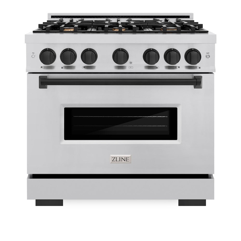 ZLINE Autograph 36″ 5.2 cu. ft. Classic Dual Fuel Range with 6 Burners in Stainless Steel with Matte Black Accents, CDRZ-36-MB