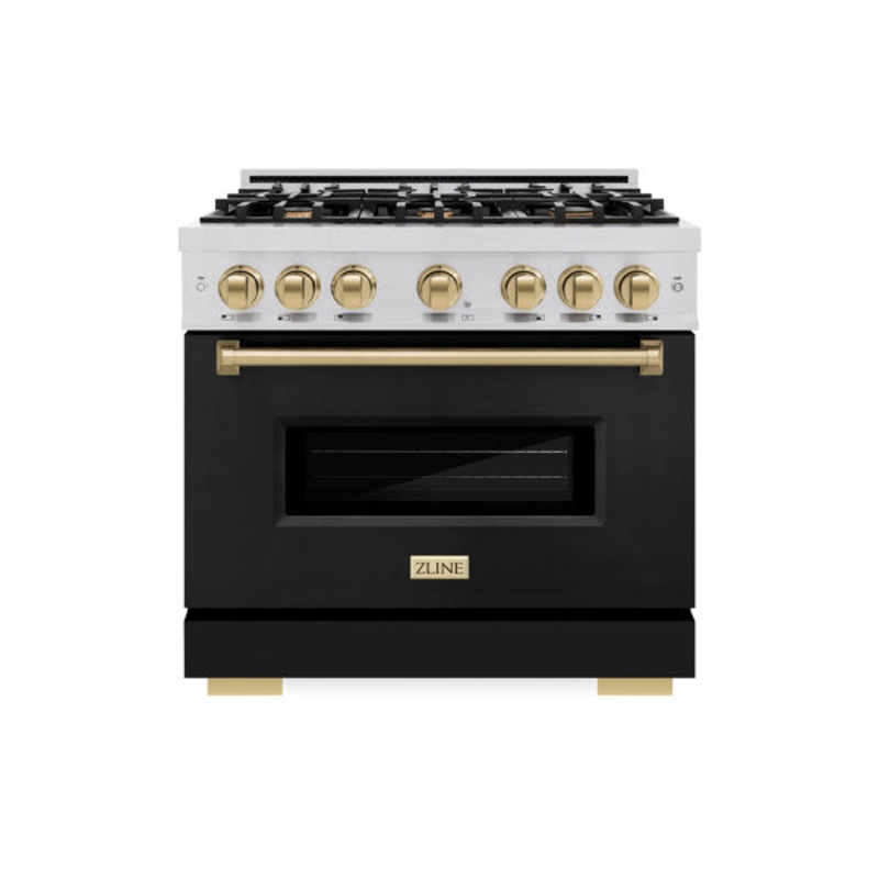 Luxury isn't meant to be desired - it's meant to be attainable. The ZLINE Autograph Edition 36 in. 5.2 cu. ft. Classic Gas Range with 6 Burner Cooktop and Convection Gas Oven in Stainless Steel with Black Matte Door and Champagne Bronze Accents (CGRZ-BLM-3