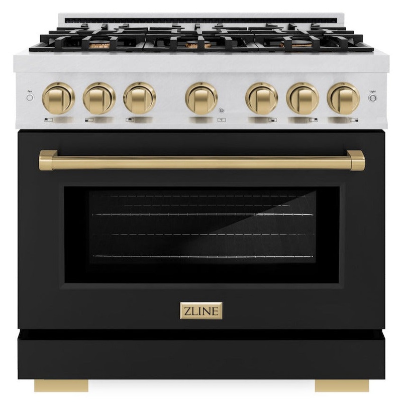 Luxury isnt meant to be left desiredits meant to be attainable. The ZLINE Autograph Edition 36 in. 5.2 cu. ft. Select Gas Range with 6 Burner Cooktop and Convection Gas Oven in Satin Stainless Steel with Black Matte Door and Champagne Bronze Accents (HGRSZ-BLM-36-CB) combines the elegance of a hand-finished porcelain gas cooktop with 6 Italian-made auto-reignition burners, a gas convection oven with an energy-efficient cooling fan to ensure quiet operation, a beautiful black matte door with a Horizon window design, and stunning champagne bronze knobs and handle allowing you to master every meal. With a modern, timeless style and refined functionality, ZLINE Select Gas Ranges are masterfully crafted to deliver an elevated culinary experience.