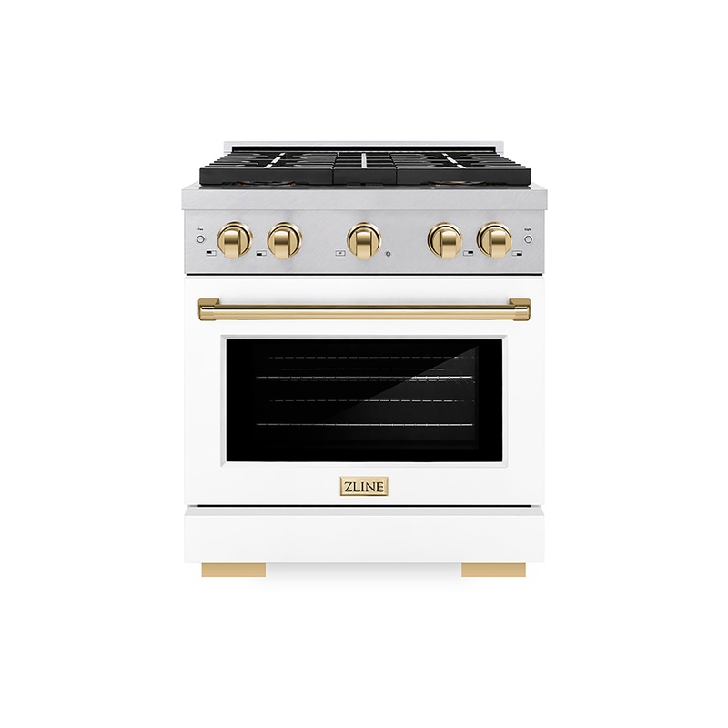 Luxury isnt meant to be desiredits meant to be attainable. The ZLINE Autograph Edition 30 in. 4.2 cu. ft. Paramount Gas Range with 4 Burner DuoPro Cooktop and Convection Gas Oven in Satin Stainless Steel with White Matte Door and Polished Gold Accents (PSGRSZ-WM-30-G) features a high-powered gas cooktop with 4 hand-crafted Italian dual-ring brass burners and a versatile gas convection oven allowing you to master every meal. Double your cooking power on every burner with a DuoPro Cooktop that delivers ultimate flame control flexibility and unprecedented culinary confidence.